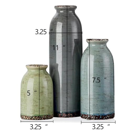Colorful Design: This multi color ceramic vase set made of blue, green and gray colors will bring a touch of brightness to your home decoration, if it is placed in the lounge coffee table, bookshelf, fireplace, porch,mantel or as a rest room, bedroom, kitchen decoration is a wonderful choice. Advantages: Whether it contains dried flowers or green plant additives, it can decorate your home or office. HIGH QUALITY CERAMIC MANUFACTURING: 100% top quality ceramic handmade, this vase has good corrosion resistance to keep your flowers secure and comfortable. These vases are great for displaying your favorite dried or artificial flowers and greenery, but aren’t advisable for fresh flowers and water. Multifunctional decorative ceramic set-(size 3″L x 3″W x 10″H; 3″L x 3″W x 7.5″H; 3″L x 3″W x 5″H; This vase have Five other colors, and there’s all the time one for you to suit your decorating needs.