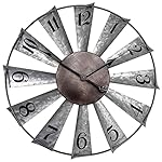 🕰️GALVANIZED METAL-With rust accents the clock creatively crafted metal with 12 windmill blades which takes several times acid washing and galvanized to make nice shinny wave, the distressed clock center and iron ring shows its old-fashioned century favor.